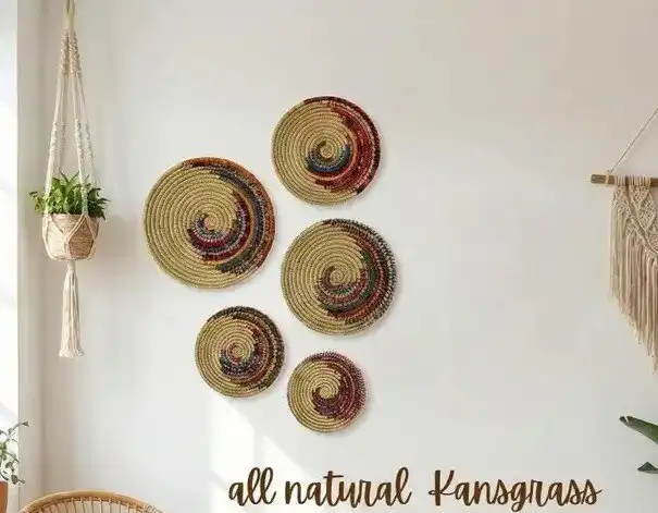 Add warmth, personality, and cultural richness to your home with this Set of 5 Boho Multicolor Kansgrass Wall Mats. Each piece is carefully handwoven from natural kansgrass fibers and dyed in vibrant, earthy hues, creating a visually striking wall display that feels both artistic and organic.