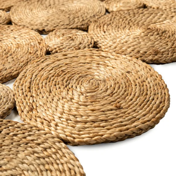 Its elegant oval shape softens spaces and adds visual flow, making it a beautiful choice for entryways, porches, kitchens, or interior transition areas. Durable yet graceful, this mat brings organic warmth and artisan character into everyday living while complementing a wide range of décor styles.
