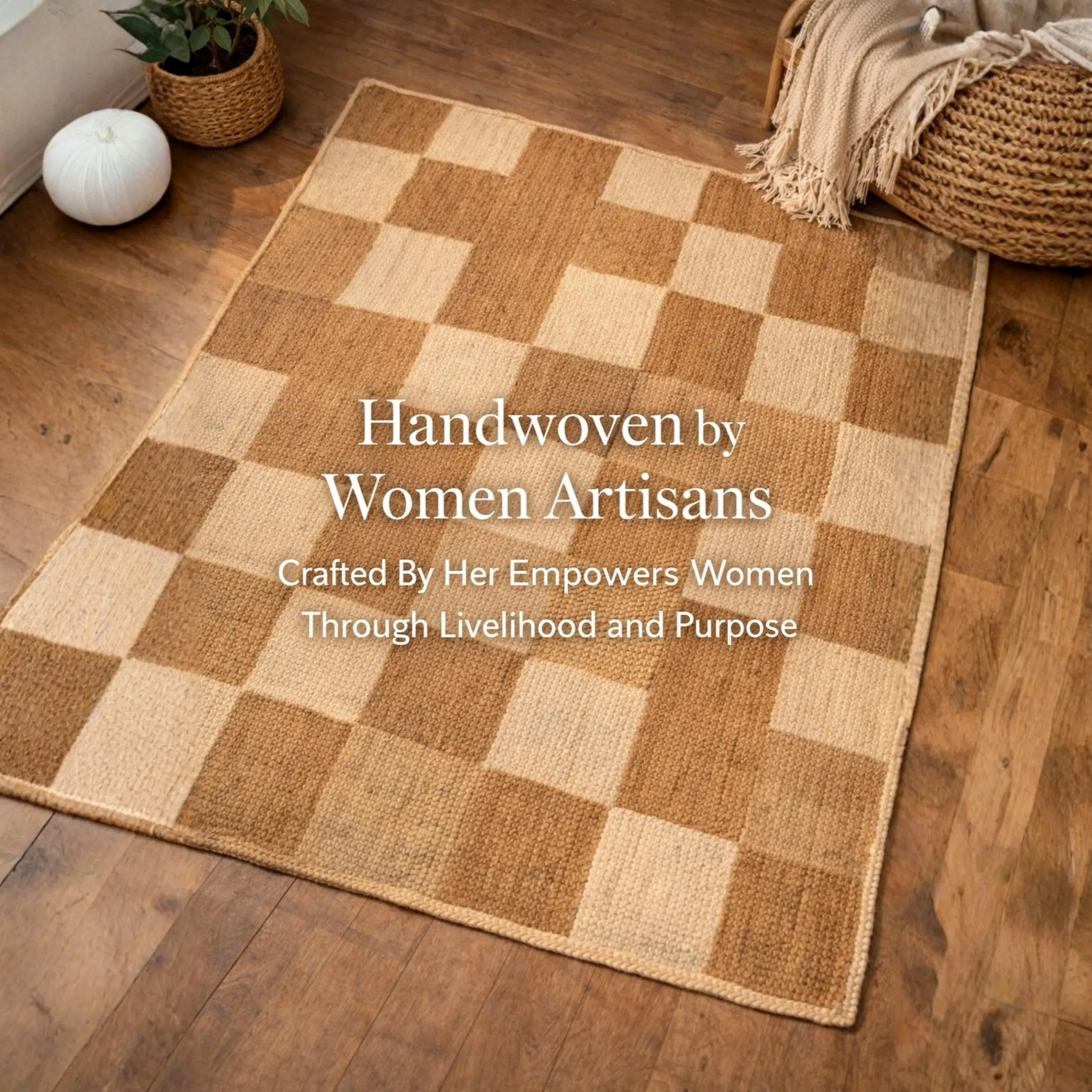 This hand-woven two-tone checkered jute rug combines artisanal craftsmanship with practical durability, making it a stylish and functional addition to any home. Designed for living rooms, bedrooms, or dining areas, it adds warmth, texture, and a subtle visual pattern to your floors.