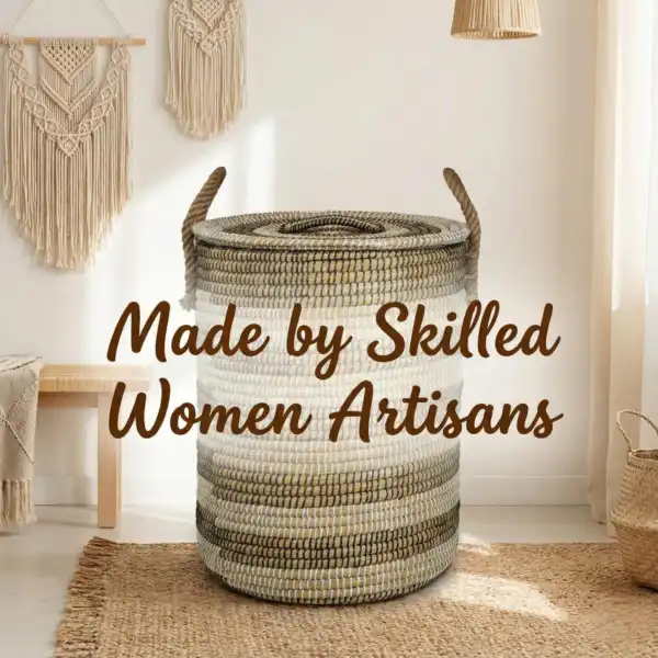 Each basket is meticulously handwoven by skilled women artisans, creating subtle variations in weave and tone that make every piece truly one of a kind. With its fitted lid and sturdy handles, this basket keeps your home tidy while adding warmth and handcrafted charm to bedrooms, living spaces, or entryways.