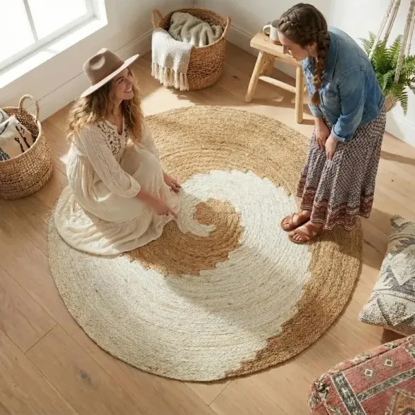 Designed to complement boho, modern, minimalist, and rustic interiors, this mat works beautifully in living rooms, entryways, bedrooms, or cozy corners. Beyond its aesthetic appeal, each piece represents ethical craftsmanship and meaningful impact, making it décor you’ll be proud to display. Subtle variations in weave and tone highlight the authenticity and individuality of true handmade artistry.