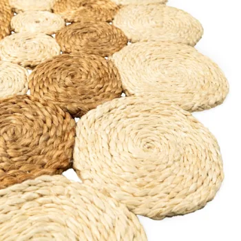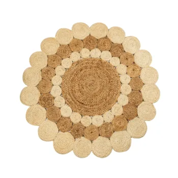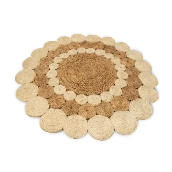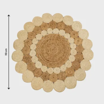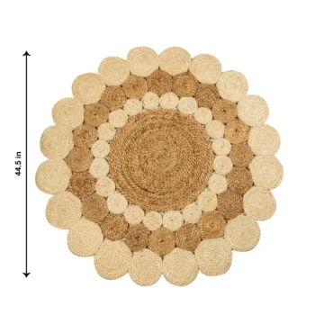 Elevate your home with this Handwoven Two-Tone Jute Mat, a beautifully braided round rug that brings natural warmth and handcrafted charm into any interior. Made from 100% natural jute fibers, its soft two-tone palette and circular braided design create a calm yet striking foundation, perfect as a centerpiece accent or layered for added texture.